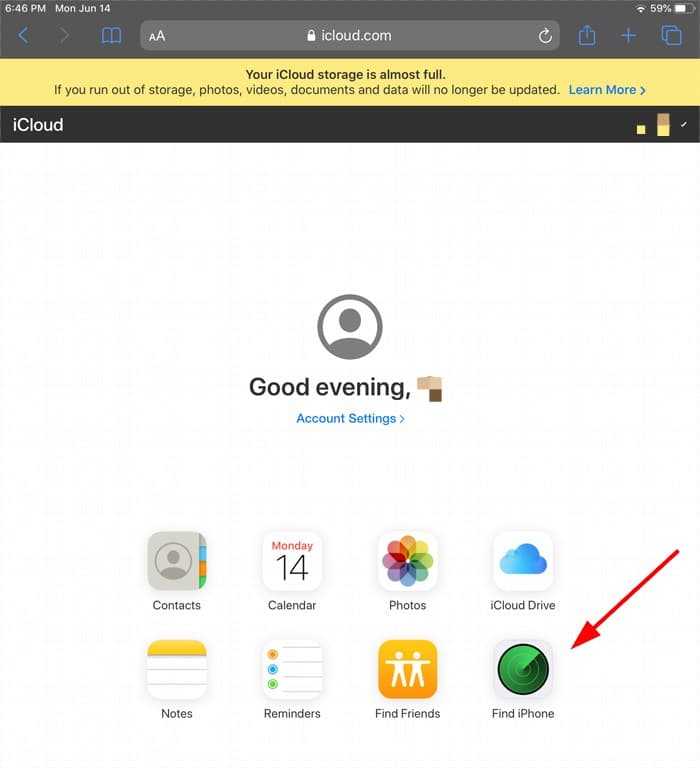 If you lot can access to Internet at the moment, and the Discover My iPad switch is toggled on in your Settings, y'all are lucky enough equally y'all can sign into iCloud.com and unlock your iPad that won't connect to iTunes or figurer remotely through an "erase iPad" option there.
